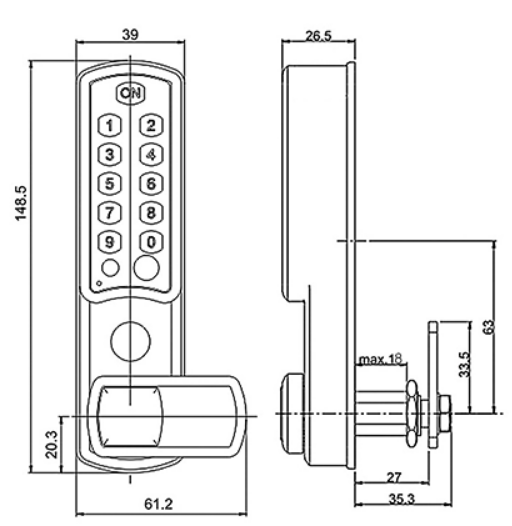 - Afmetingen achterzijde: 66 mm (b) x 122 mm (h) x 27,7 mm (t)